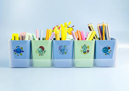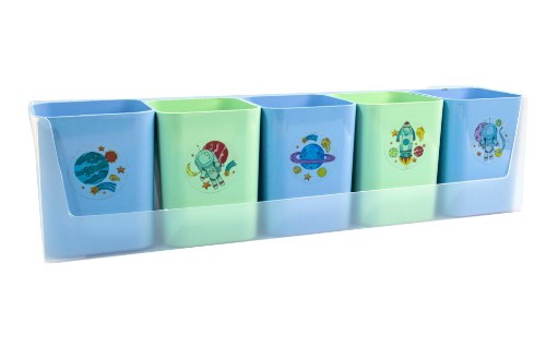 Organizar itens escolares nao e tarefa facil! Lapis, canetas, borrachas e outros objetos se misturam facilmente. O Kit Docura da Dello foi pensado para que essas situacoes nao acontecam. E lindo! E pode facilmente fazer parte da composicao de algum ambiente. Acompanha suporte em Polipropileno com furos para fixacao, 5 porta objetos e cartela de adesivos com 12 carinhas.