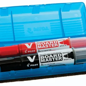 – Com sistema flip top para guardar os marcadores V-Board Master e WBM-7;