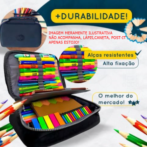 Que tal ter muito espaço para guardar seus materiais sem desordem e bagunça dentro do estojo? Este lindo estojo possui um enorme compartimento com espaço suficiente para manter tudo seguro em diversos elásticos com divisórias organizadoras modulares, permitindo que você escolha o que deve ficar como prioridade no seu estojo. Com zíper de altíssima qualidade, tecido rígido e duradouro, você terá versatilidade, segurança e o destaque que você precisa no seu dia a dia!. Garanta já o seu e tenha diga adeus a bagunça!