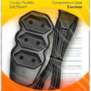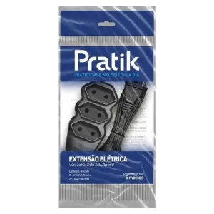 Extensão Elétrica Pratik 5 Metros 3 Tomadas 2×0,75mm Preto