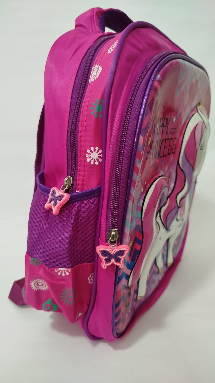 Com a Mochila seu pequeno tem os personagens mais divertidos em 1 só com designe 3D vão poder desfrutar de conforto, praticidade e segurança de qualidade durante o primeiro período escolar. Essa mochila possui dois compartimentos com amplo espaço interno, dois bolsos laterais, alça de costas reforçada e regulável, alça de mão, puxador de alumínio. A mochila permite que os pais coloquem roupas, cadernos de desenho, lanchinhos e lápis de cor sem se preocupar com o espaço. As cores são lindas e vibrantes, o alto relevo da mochila permitindo que a criança brinque e se divirta com segurança.