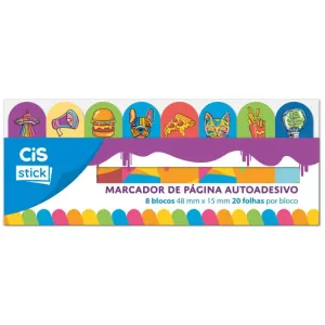 Marcador de página autoadesivo 8 blocos com 20 folhas.